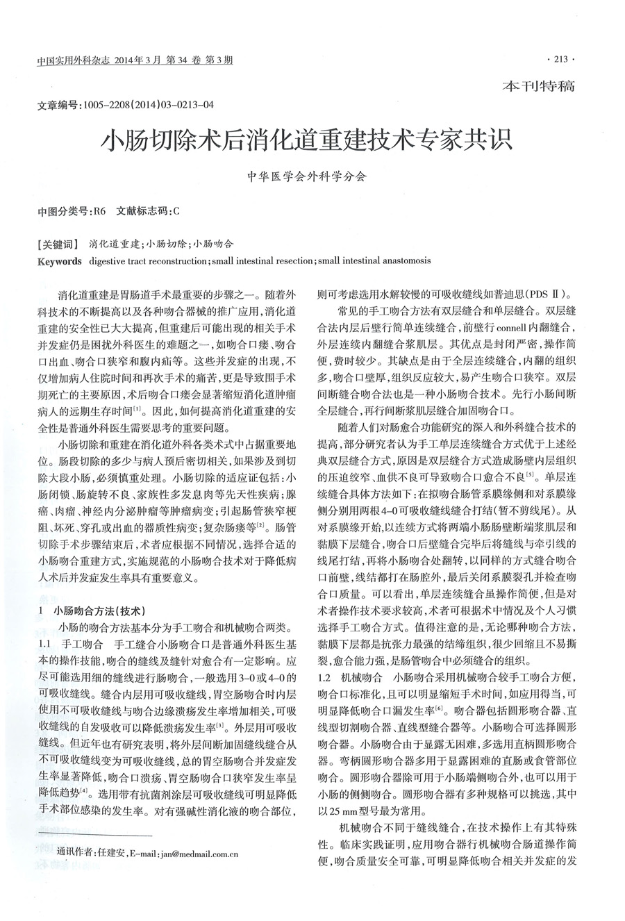 小肠切除术后消化道重建技术专家共识