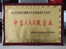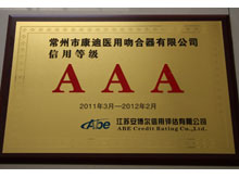 2012年获评江苏省医疗器械生产企业诚信优秀单位